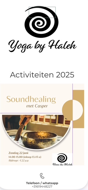 een heerlijke ervaring waarbij je mag genieten van de heilzame klanken , geef je" body and soul" een dankbaar geschenk .zondagiddag 22 juni een zomerse klanksessie met Casper Wankatah zie ook www.yogabyhaleh.nl